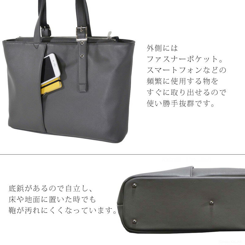 トートバッグ レディース 大きめ A4 横 ファスナー付き 合皮 軽い 肩掛け シンプル 機能的 使いやすい バッグ 合成皮革 2-641 Plus-noblan- 人気 プレゼント おすすめ 送料無料