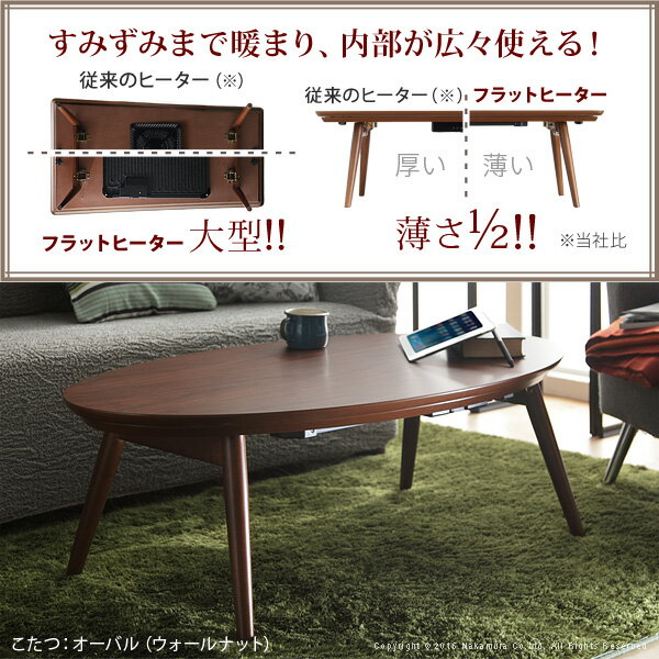 こたつ 折りたたみ 北欧 フラットヒーター折れ脚こたつ 〔アロー〕 コタツ テーブル リビングテーブル 楕円 ウォールナット センターテーブル 木製 おしゃれ