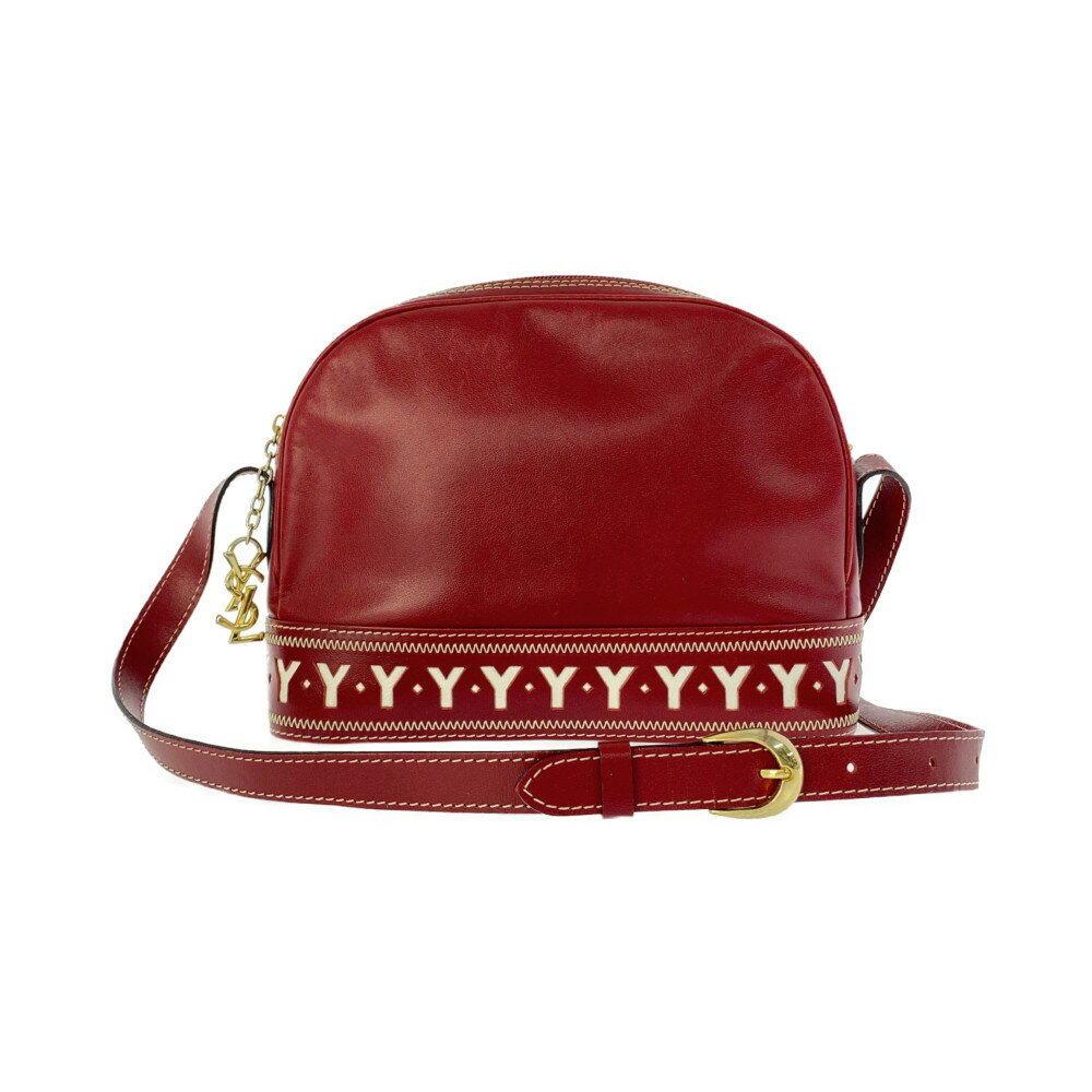 イヴサンローラン Yカットロゴチャームショルダーバッグ/レッド/Yves Saint Laurent【♀】【B】【レディース】/b201222【RF2】■373719【中古】