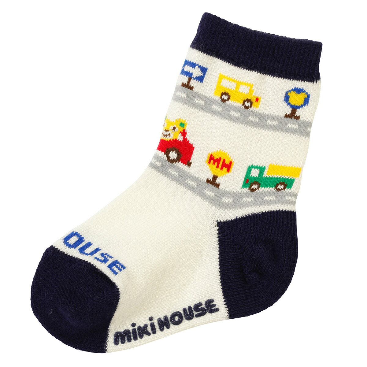 ●9-10cm,11-13cm,13-15cmロゴの簡易すべり止め付き【ミキハウスこだわりのソックス】表糸には天然繊維の綿100%使用。